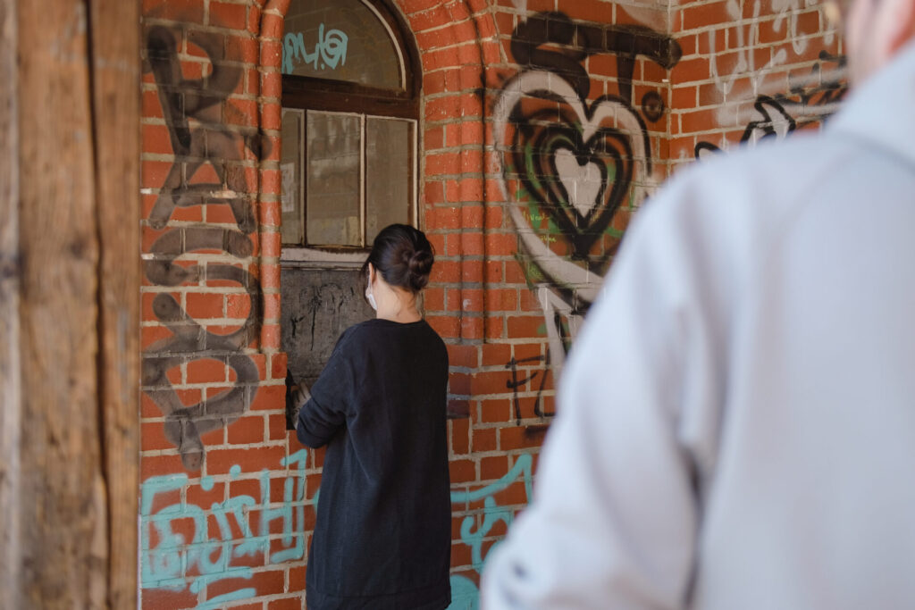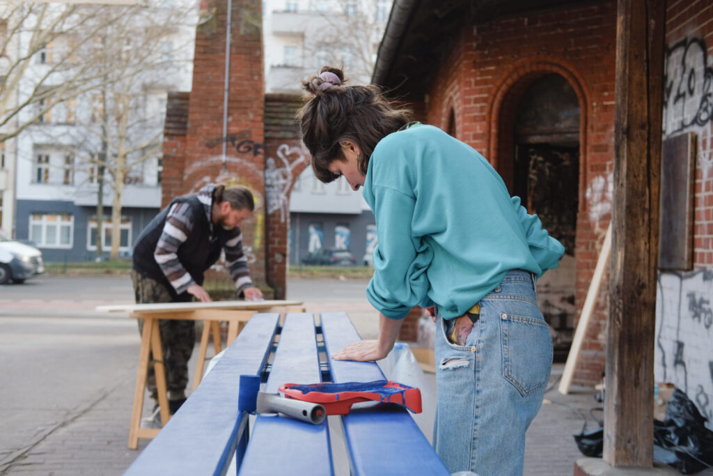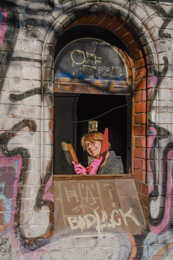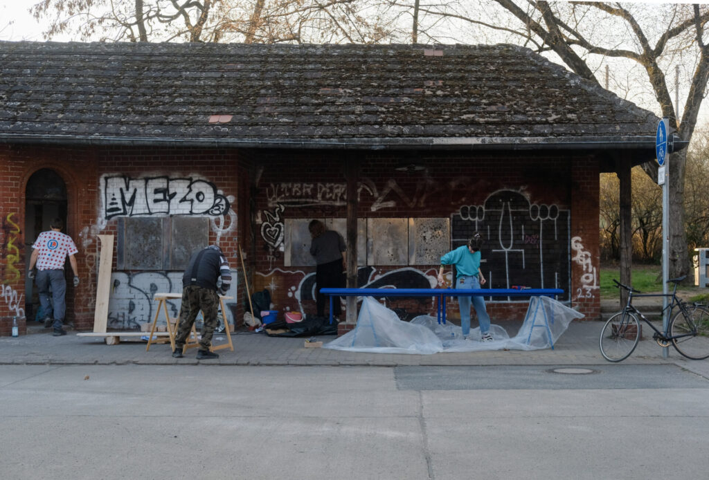 Nach einem partizipativen Planungsprozess haben wir die Renovierung mit minimalem Budget selbst durchgeführt. Mit Pinsel, Schleifmaschine, Farbeimer und jeder Menge Ideen wurde geplant, geschliffen, gestrichen und geputzt, was das Zeug hält. Aus dem kleinen Häuschen ist so ein offener Kunstraum entstanden – bereit für temporäre Ausstellungen, spontane Interventionen und kreative Begegnungen.